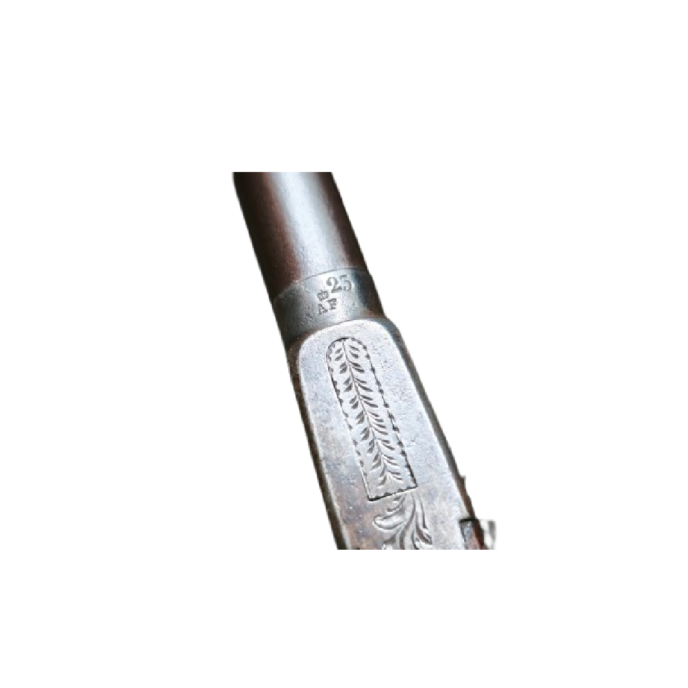 Jolies gravures sur le coffre, poinçon AF (pour auguste FRANCOTTE) et numéro 25.