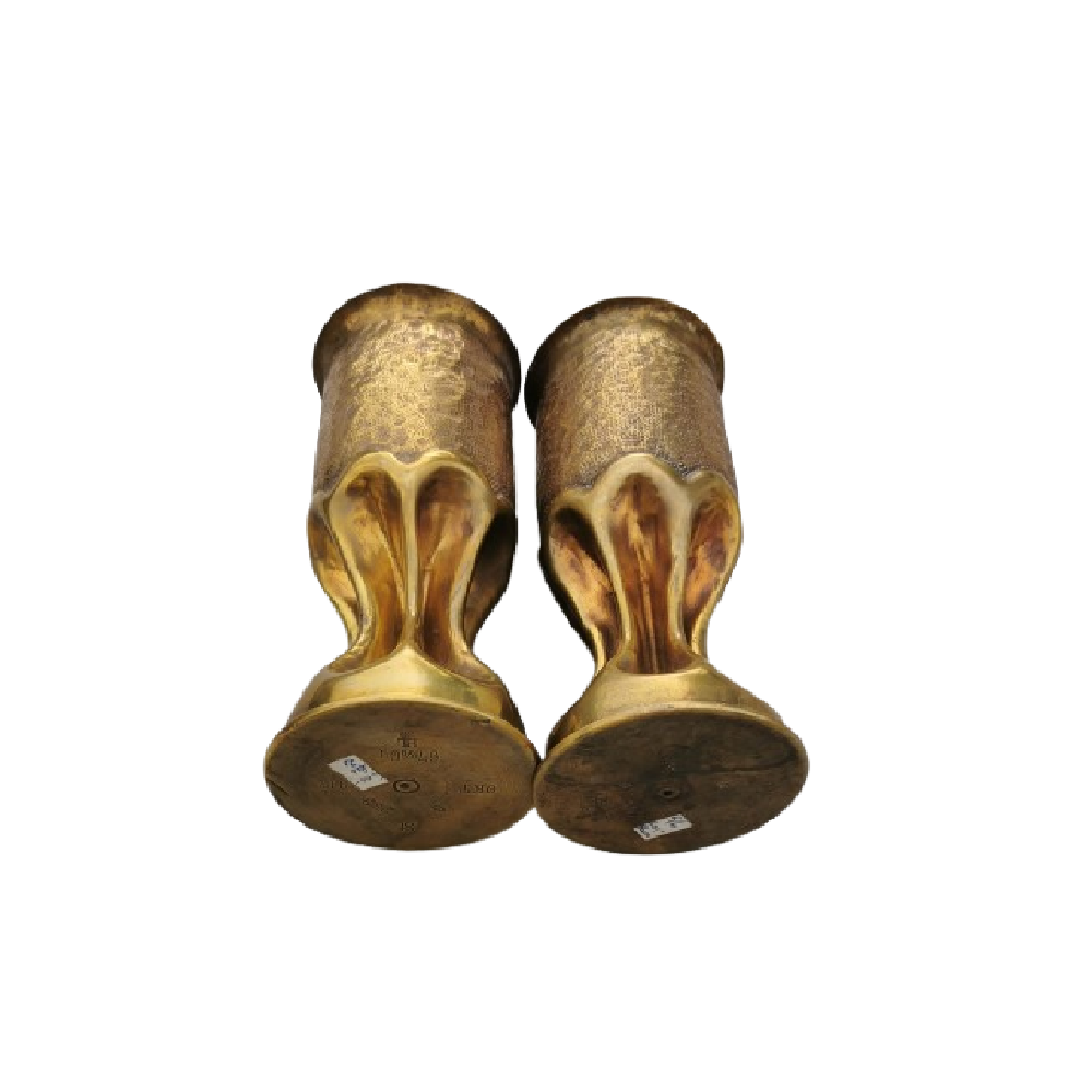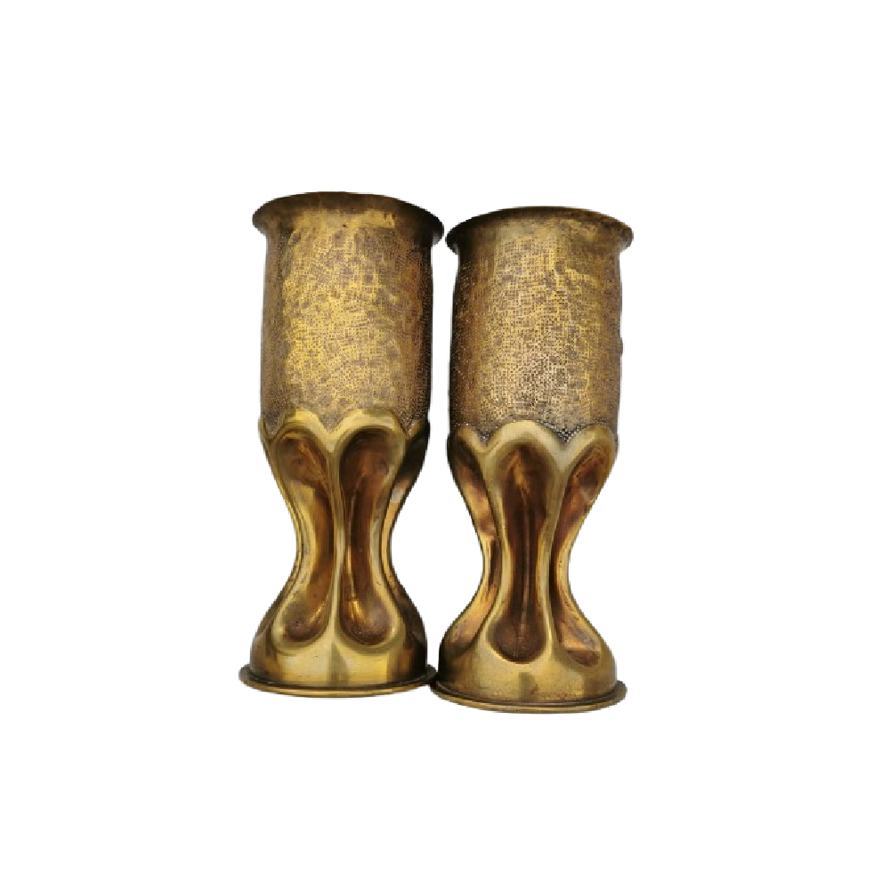 Travail de tranchée des poilus de la grande guerre, vase avec sculpture motif unique de feuilles et de papillons mélangés, objet très décoratif et commémoratif du travail de nos soldats de 14-18.